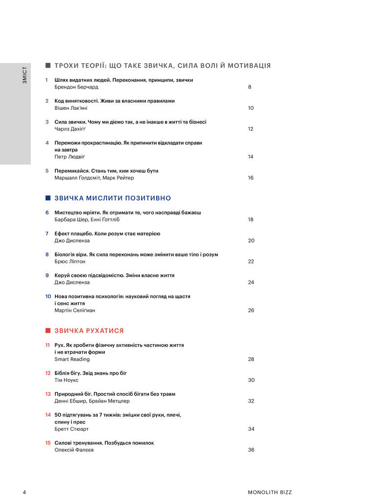 Ви знайдете відповіді на запитання, як керувати звичками, як сформувати корисні звички харчування, руху, мислення і стосунків. Інфографіка підтримає вашу цікавість і мотивацію, а 10 ключових ідей з книжки допоможуть не пропустити нічого важливого.