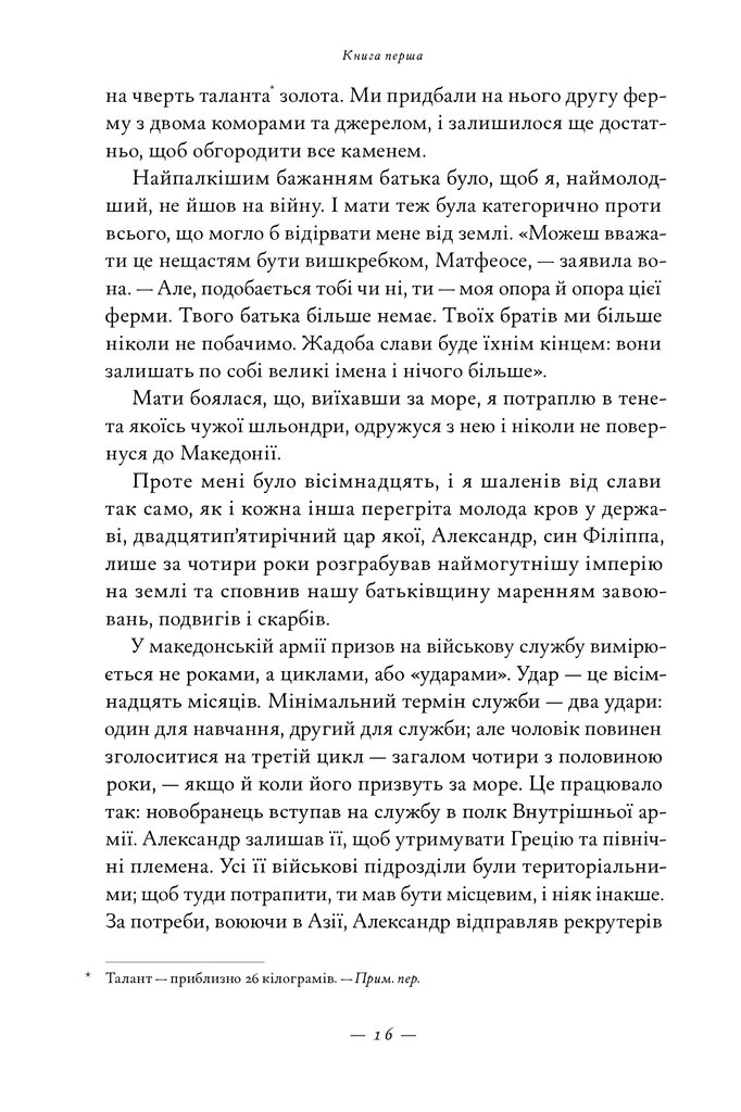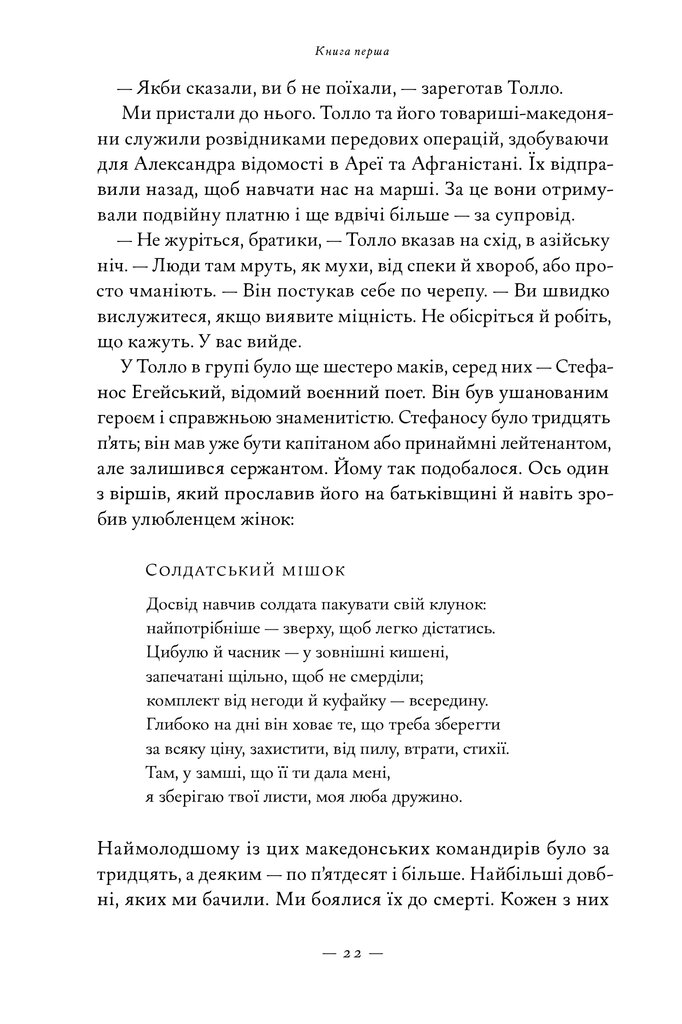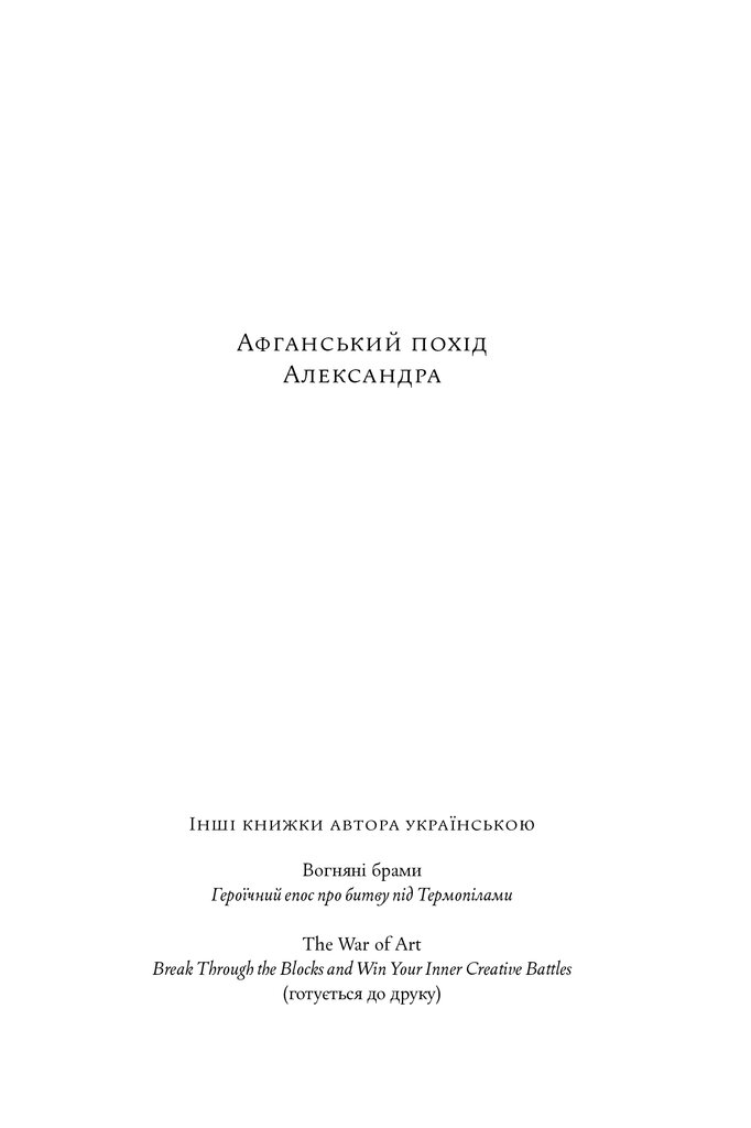 Афганська війна, яку Александр Македонський вів понад два тисячоліття тому, разюче подібна до тієї, що точиться сьогодні. Ця книжка Прессфілда — для всіх тих, хто прагне глибшого розуміння, що стоїть за війнами в одному з найнеспокійніших регіонів світу. Вінс Флінн, автор бестселера «Американський убивця»
