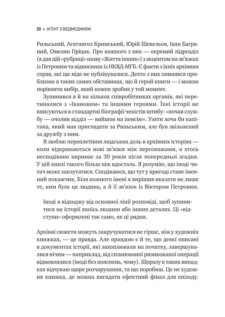 Пропонуємо купити «Агент з ведмедиком» усім, хто цікавиться нетривіальними документальними розслідуваннями, що спираються на історичні матеріали, які раніше перебували під грифом «Секретно».