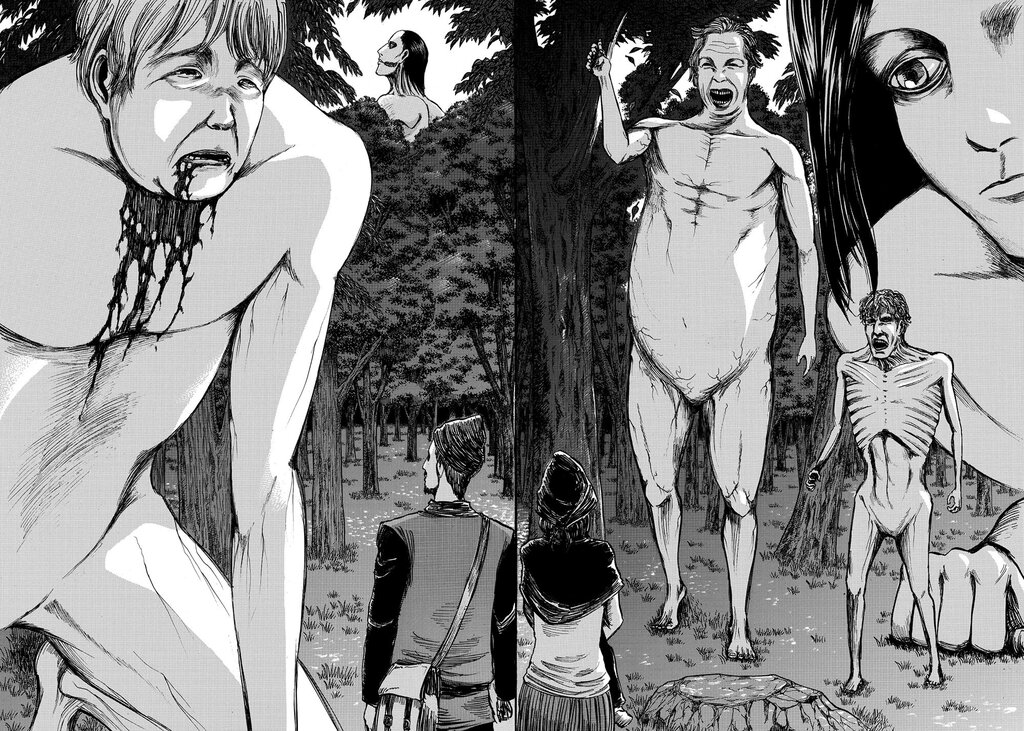 Через пробоїну, яку колос зробив у мурі, титани покотом полізли в місто. Мікасу розбила звістка про загибель Ерена. Вона вбиває ворогів одне за одним, аж поки не падає... Та раптом зявляється таємничий титан, який рятує Мікасу з лап іншого. Хто він, цей титан, що боре інших титанів, скільки стає сил?