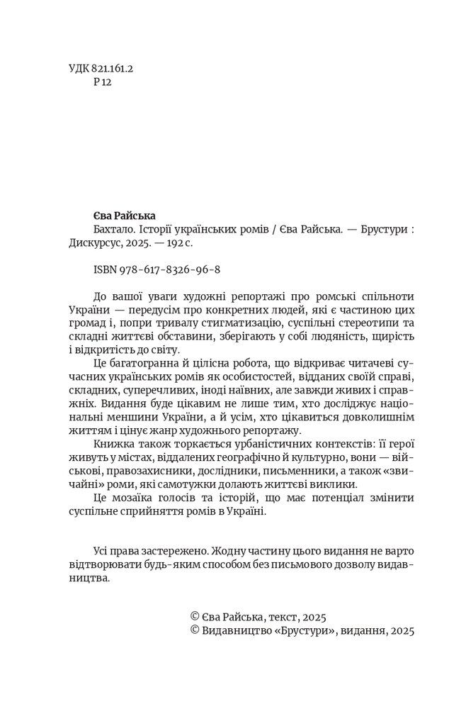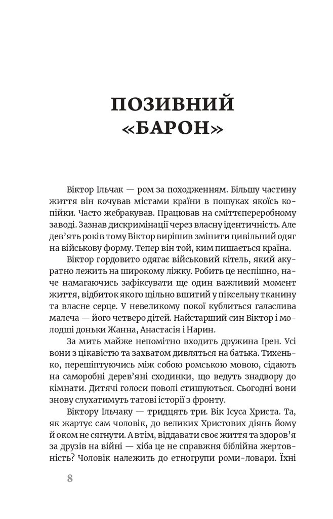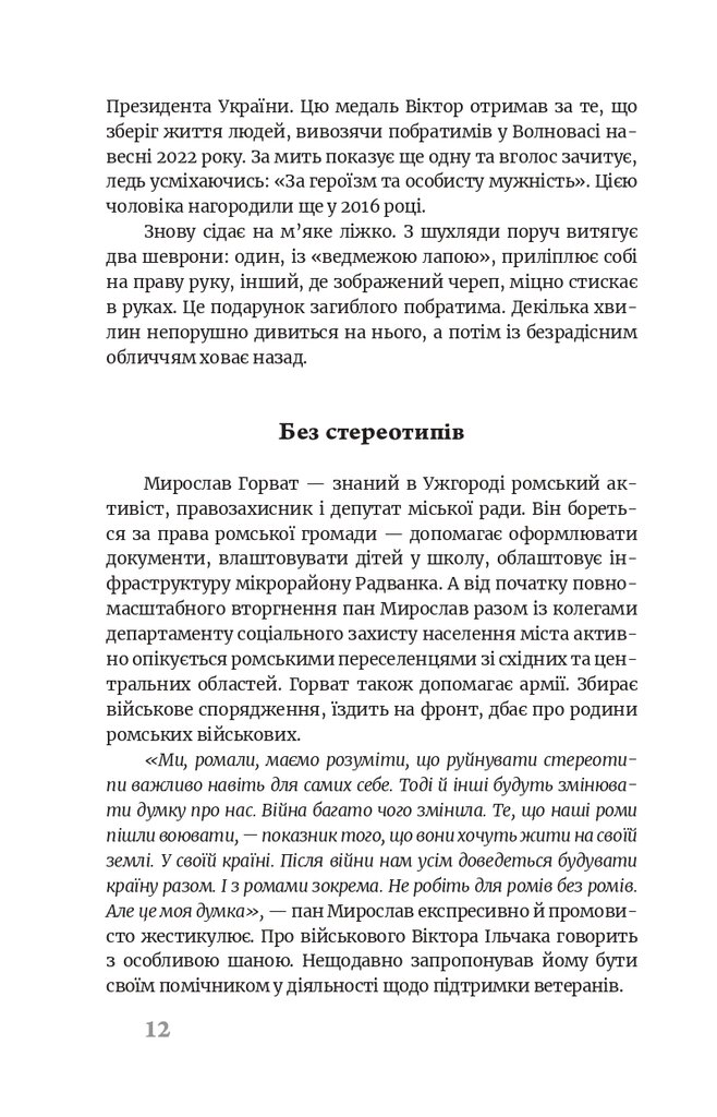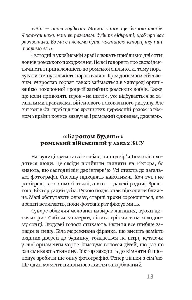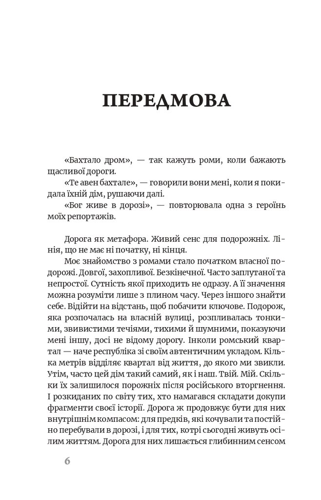 Це багатогранна й цілісна робота, що відкриває читачеві сучасних українських ромів як особистостей, відданих своїй справі, складних, суперечливих, іноді наївних, але завжди живих і справжніх. Видання буде цікавим не лише тим, хто досліджує національні меншини України, а й усім, хто цікавиться довколишнім життям і цінує жанр художнього репортажу.