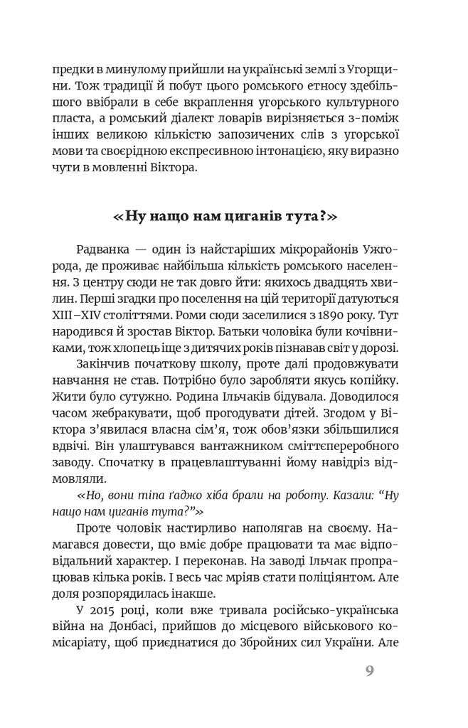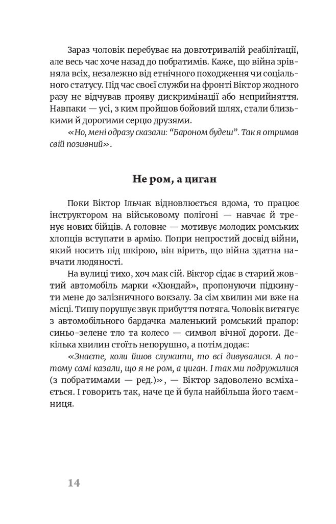 Книжка також торкається урбаністичних контекстів: її герої живуть у містах, віддалених географічно й культурно, вони — військові, правозахисники, дослідники, письменники, а також «звичайні» роми, які самотужки долають життєві виклики. Це мозаїка голосів та історій, що має потенціал змінити суспільне сприйняття ромів в Україні.