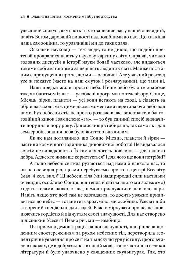 Космос — незвіданий загадковий простір. А людство споконвіку прагнуло відкриттів та мандрівок. Коли ми дослідили Землю як свої п’ять пальців, то цілком закономірно кинули оком на зоряне небо над головою. А там — новий Океан, глибини космосу, інші галактики. І розпочалася космічна одіссея... Дослідження планет і супутників, роботизовані місії та експедиції, «Вояджер» і «Аполлон», «сусіди по космосу», невідомі туманності й таємниці сузір’я, кораблі на межі Сонячної системи і те, що поза її межами. «Блакитна цятка» — книжка про те, як нам варто знову подивитися на себе, на наше місце у Всесвіті й на те, яким чином навіть у той час, коли поклик незвіданого став тихішим і менш виразним, центральний елемент людського майбутнього лежить далеко поза межами земної кулі.