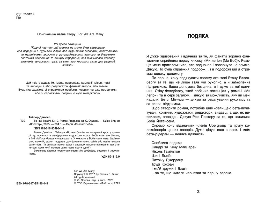 «Бо ми безліч» — це друга книга з популярної науково-фантастичної серії Bobiverse, що поєднує космічну одіссею з глибокими філософськими роздумами про природу свідомості, ідентичність та еволюцію людства. Після цифрового безсмертя Боба його копії множаться — і кожен новий Боб стає окремою особистістю. Але разом зі свободою вибору приходять суперечки, розбіжності в поглядах і боротьба за майбутнє як людства, так і всесвіту.