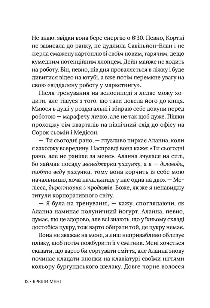 Кожна пам'ятає того єдиного. Того, кого не змогла забути. Люсі Обрайт їде далеко від дому, у кампус невеличкого коледжу в Каліфорнії, і радіє, що забралася за сотні миль від матері-егоїстки. Поринаючи у новий початок, дівчина хапається за студентське життя і всі його принади: нових друзів, скажені вечірки, цікаві заняття. А тоді вона знайомиться зі Стівеном Демарко. Чарівним. Привабливим. Непростим. Спустошливим. Впевнений і пихатий, Стівен бачить у Люсі щось таке, чого немає у решти, і це його бачення разом із відчуттям можливостей, які надає увага хлопця, швидко спокушає дівчину. Стівен, тимчасом, рішуче намагається забути випадок, закопаний у його минулому, який, якщо вирине назовні, може занапастити йому життя — і це цілеспрямоване бажання успіху поширюється також на завоювання і утримання серця Люсі. Переходячи туди-сюди від голосу Люсі до голосу Стівена, «Бреши мені» відстежує їх звязок впродовж навчання у коледжі і після його закінчення, під час життя у Нью-Йорку. Із психологічною проникливістю, цей близький до болю роман документує пожадливі амбіції, бажання і дилеми молодих людей, а також показує, як складно буває відпустити, навіть коли знаєш, що треба.