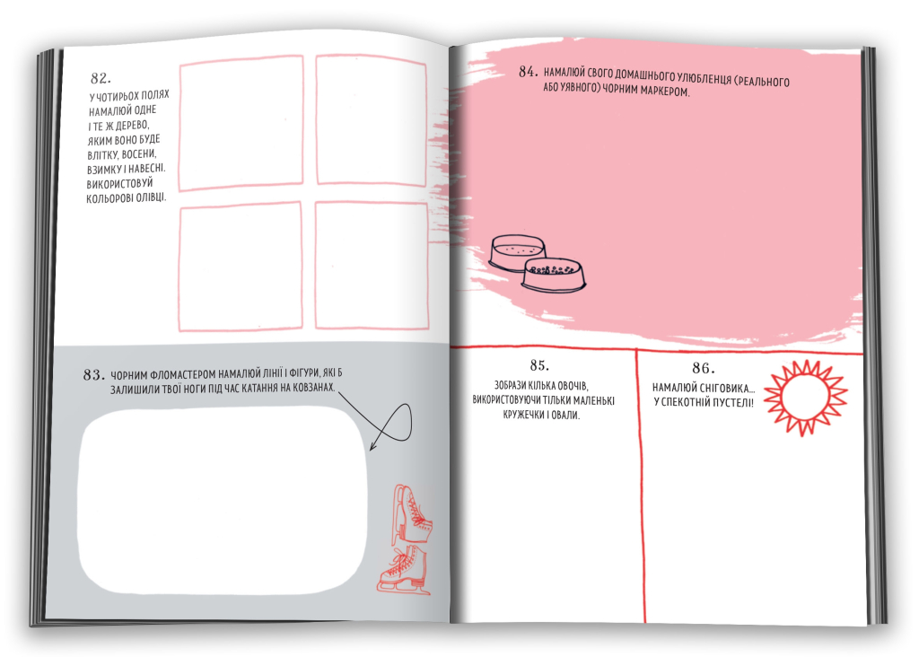 Якщо малювання - твоя пристрасть, але іноді бракує ідей, тоді цей креативний мистецький щоденник точно стане тобі у пригоді! Незвичайні завдання на кожен день року не лише дозволять приємно провести час, а й добряче прокачають твою уяву. Ти споглядатимеш речі з різних ракурсів, вигадуватимеш химерних істот і створюватимеш цілі світи в обмеженому просторі, а ще познайомишся з цікавими художніми техніками і прийомами, до яких вдавалося чимало відомих митців. Коли ж усі завдання буде виконано, ти матимеш справді унікальне свідчення своїх досягнень за рік!