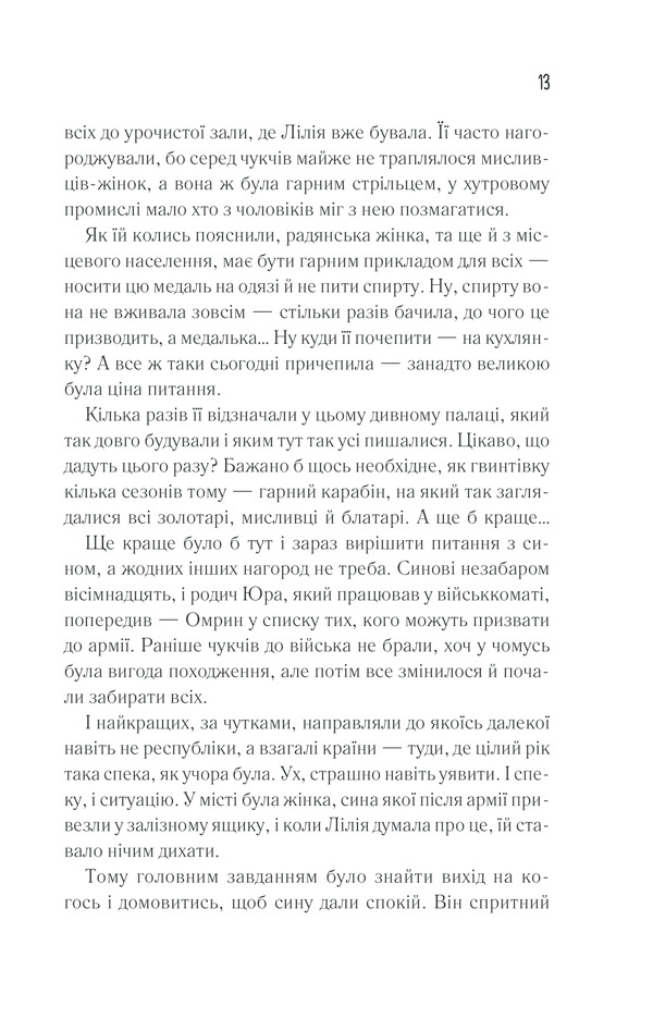 Це історія маленької жінки, якій довелося розбиратися з викликами долі по-чоловічому. Її єдиного сина, Омрина, вбили одноплемінники, свої. Поки він тонув, вони забивали його баграми, бо забирати в морських духів їхню здобич — погана прикмета. Але ще гірше — забрати в матері її дитину. Тому слід поквитатися з винними. З тими, хто правив те жорстоке дійство, і з тими, хто мовчки спостерігав. Поквитатися так, як заведено в її народу, коли за певних обставин люди — це неначе ще одна здобич. Свої чи чужі — однаково. Для когось це називатиметься помстою. Для неї — справедливістю. Це історія, що починається в пізні радянські часи на холодному північному березі, де простіше зустріти вовка, аніж людину, а закінчується через багато років на півдні України. Це історія Лилєкей.