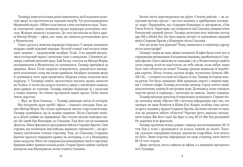 Спалахи катастрофи нез’ясованого характеру перетворили колись квітучий півострів Кіммерик на попіл. Дешт світ нового порядку. Мешканці землі, яким вдалося вижити, стали засоленими, а з летючої станції «Мати Вітрів» на померлий світ дивляться Старші Брати. Один із них, Талавір, отримує завдання розслідувати вбивство, а також знайти Золоту Колиску таємничу зброю, розроблену вченим Мамаєм. Та, ступивши на висушену твердь Дешту, він уже не зможе повернутися. Талавір муситиме пройти випробування нищівною правдою, що виявиться страшнішою за гарячий всезнищенний суєр. Солоні гранули на скривавлених пучках древніх богів розкажуть свою історію, історію спопелілого світу