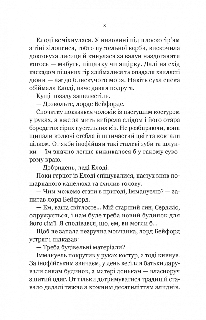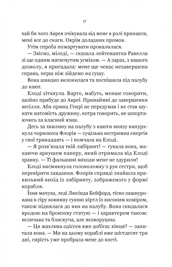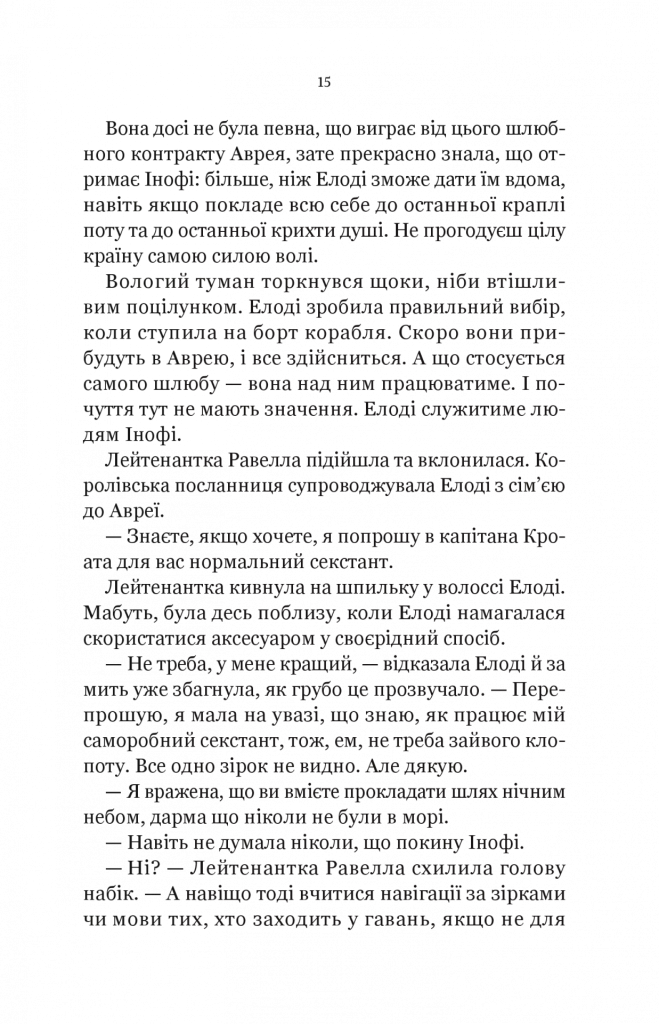 Елоді, донька лорда Бейфорда, ніколи не прагнула залишити рідне герцогство Інофі, радше навпаки — була переконана, що її призначенням є всіляко допомагати своєму народові. Життя в їхньому краї непросте: клімат непередбачуваний, врожаї мізерні, а люди часто-густо потерпають від голоду. Тож коли батько повідомив доньку, що свататиме її за Генрі, принца з успішного та квітучого острова Аврея, в обмін на повні сховища цієї зими й кожну зиму опісля, вона погодилася. До того ж Елоді листувалася з Генрі та знає його як приємну й цікаву людину. А проте, щось не сходилося. Інофі отримає підтримку та провізію. Що натомість матиме Аврея? На жаль, Елоді про все дізнається, коли вже буде принцесою в земному раю, який цілком може стати смертельною пасткою. Тим паче, вона не перша дівиця, котра погодилася на таку на позір вигідну угоду з дивним гаслом: «Життя за життя. Кров за вогонь».
