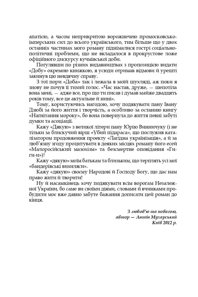 Небажано читати цю книжку людям з обмеженими розумовими здібностями, адептам різних людоненависницьких та тоталітарних ідеологій, особам із ознаками політичної шизофренії, соціокультурних та психопатичних станів, спричинених браком освіти, культури та виховання, людям із ознаками "совкового дебілізму", особам, яким не виповнилося 18 років та вагітним жінкам. Усі збіги імен, подій та місць, описаних в цій книзі, з реальними людьми та об'єктами є випадковими та не ставлять на меті ніякого іншого завдання, окрім створення повноцінної художньої картини світу, часу і характерів, описаних у творах. Після прочитання цього попередження ЖОДНІ ПРЕТЕНЗІЇ НЕ ПРИЙМАЮТЬСЯ!!! ЗАБОРОНЕНЕ ЧИТАННЯ ЛЮДЯМ БЕЗ ПОЧУТТЯ ГУМОРУ!!!