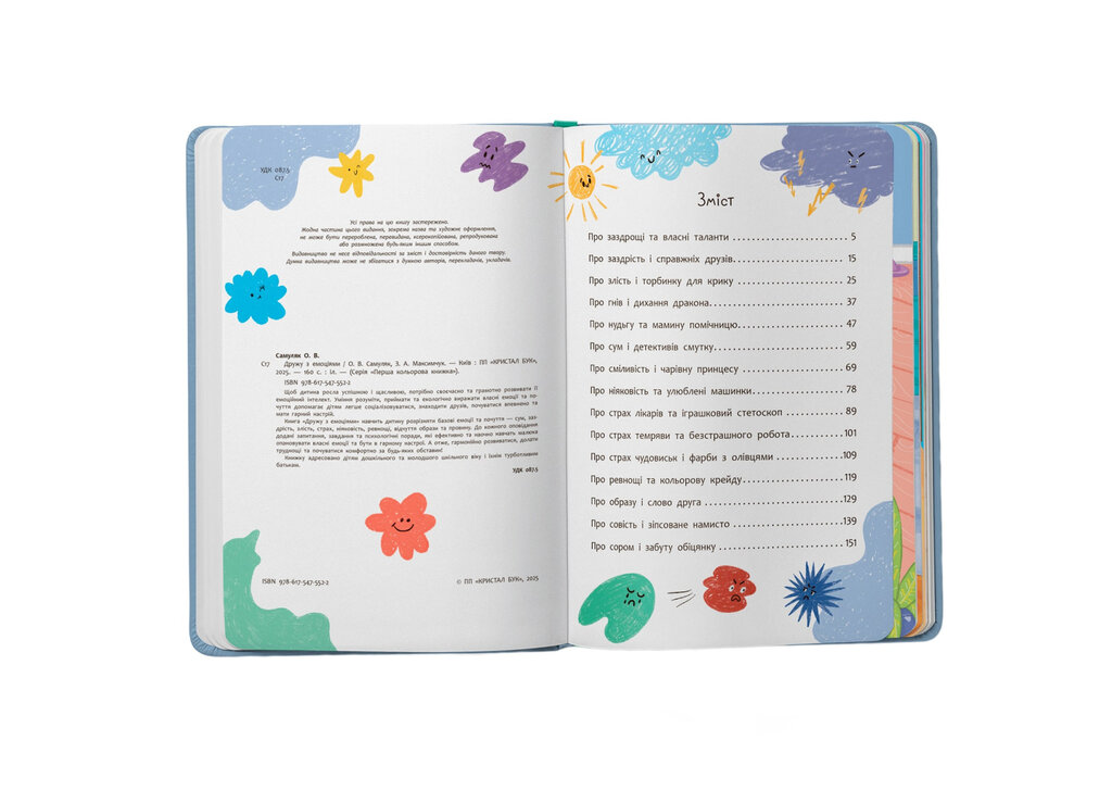 Книга «Дружу з емоціями» навчити дитину розрізняти базові емоції та почуття — сум, заздрість, злість, страх, ніяковість, ревнощі, відчуття образи та провину. До кожного оповідання додані запитання, завдання та психологічні поради, які ефективно та наочно навчати малюка опановувати власні емоції та бути в гарному настрої. А отже, гармонійно розвиватися, долати труднощі та відчуватися комфортно за будь-яких обставин!