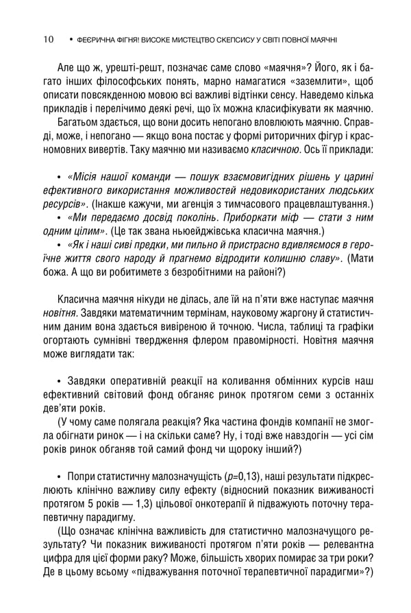Доцент в інформаційній школі Вашингтонського університету Джевін Вест та професор кафедри біології Карл Берґстром запрошують до хрестового походу проти фейків, маячні, псевдонаукової брехні та інших небезпечних інформаційних монстрів. Автори книжки викривають липові статистики та фальшиві сенсації, руйнують наукові міфи та нейтралізують політичну дезінформацію, відкривають «чорні скриньки» фальсифікацій століття. І, найголовніше, вчать критично мислити, шукати різні гіпотези, тверезо та скептично оцінювати інформацію, яку ми споживаємо занадто нерозбірливо.