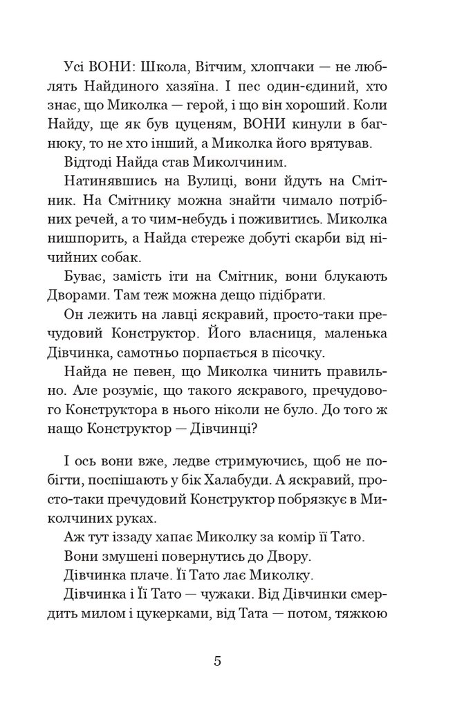 Книга «Миколчині історії» Марини Павленко — цікава розповідь про справжню дружбу хлопчика Миколки і собаки Найди. Так яскраво, талановито, сердечно, пронизливо про знедолену дитину не писав ніхто із сучасних українських письменників. Але ця книжка все ж уселяє надію! Її варто прочитати і дітям, і дорослим.
