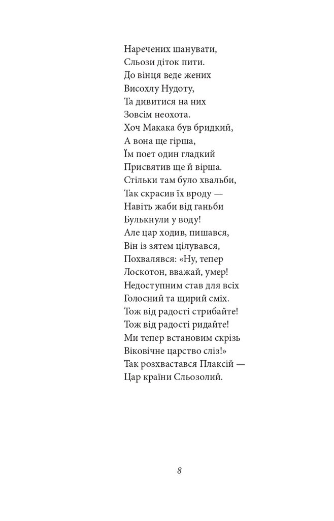 Казку «Цар Плаксій та Лоскотон» Василь Симоненко створив для свого сина Лесика за одну ніч. Цар Плаксій – король країни Сльозолий, який хоче, щоб усі діти завжди плакали. Натомість дядько Лоскотон несе радість і сміх, його люблять люди. До збірки ввійшли казки, байки, поеми, балади, епіграми, посвяти друзям, новели.