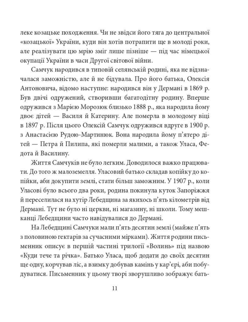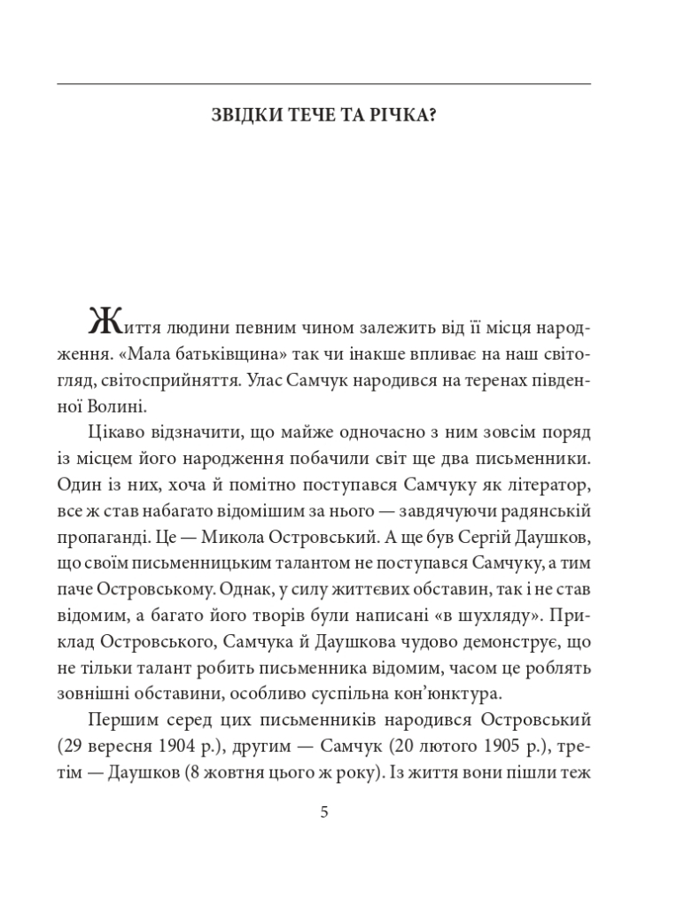 Один з найвизначніших українських письменників Улас Самчук народився 1905 року. Творчість його була широко відома в українській діаспорі, а на початку ХХІ століття нарешті почала повертатися на батьківщину. Недарма зарубіжні дослідники називали його «українським Гомером», вказуючи, що він відкрив світові досі невідому Україну. Самчук є автором шістнадцяти романів, серед яких трилогія «Волинь», «Гори говорять», «Марія», «Юність Василя Шеремети», «Чого не гоїть огонь» та багатьох інших, низки повістей, оповідань і статей. Він одним з перших розповів світові про трагедію Голодомору 1932—1933 рр. У 1980-х роках навіть йшлося про висунення Уласа Самчука на Нобелівську премію, але, на жаль, справу так і не було довершено...