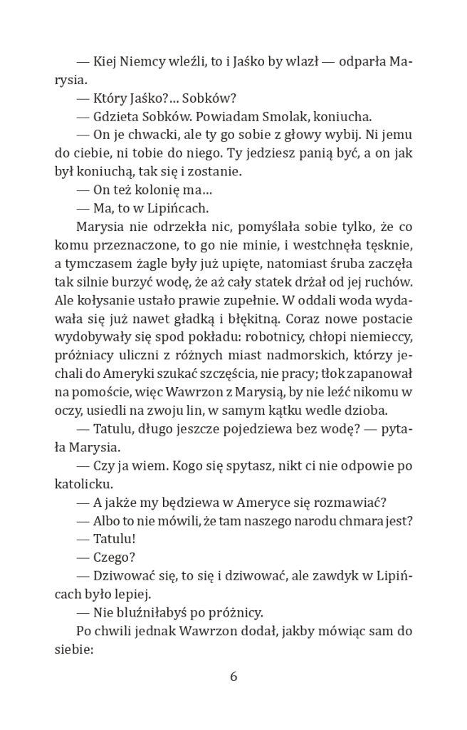 ...Zuboay chop Wawrzon Toporek razem ze swoj crk Marysi na statku wyrusza do Ameryki. Lecz zamiast bani czeka na niego wypeniona rozczarowaniem rzeczywisto. Do edycji weszy rwnie opowiadania Janko Muzykant i W krainie zota.