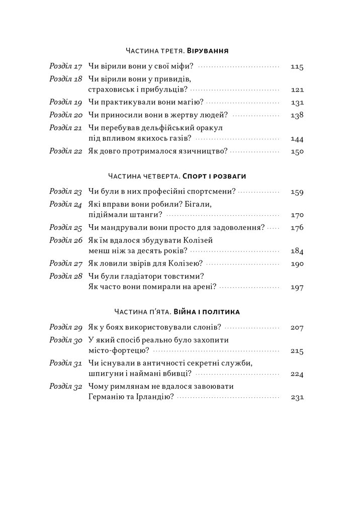 У цій книжці є оракули та шпигуни, Рим і Афіни, Спарта й Карфаген, Цезар і Нерон, язичники та християни, леви на арені й домашні улюбленці. Немає хіба занудства й намагання розповісти найвичерпнішу історію античності.