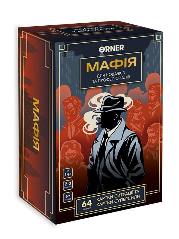 А ще в «Мафії» від ORNER є картки-ситуації та картки-суперсили, які й роблять гру унікальною! Наприклад, мафія може орудувати і на підводному човні, і в умовах карантину, і навіть ганятись за рожевими валізами.