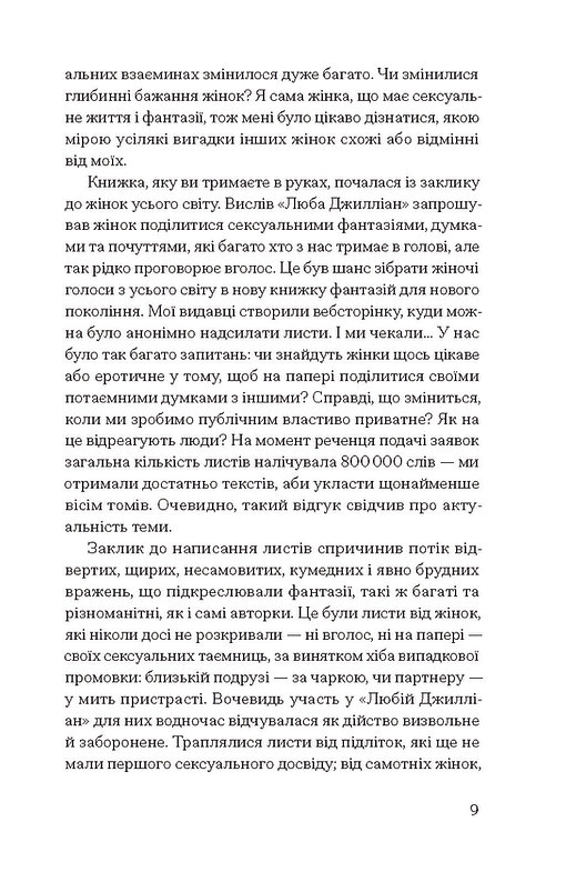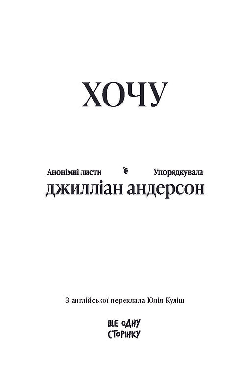 У цій визначальній для покоління книжці Джилліан Андерсон зібрала і представила анонімні листи сотень жінок з усього світу (разом зі своїм власним анонімним листом). «ХОЧУ» показує, як жінки ставляться до сексу, коли мають цілковиту свободу й анонімність.