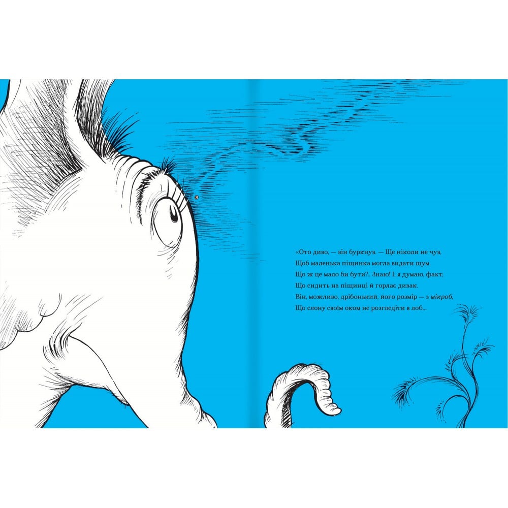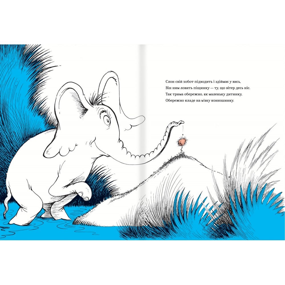 Оповідь про доброту й відвагу, цінність життя та вміння допомогти — уже класична історія відомого американського казкаря Доктора Сьюза, автора «Про Грінча, який украв Різдво!», «Кота в капелюсі», «Лоракса» й багатьох інших казок для дітей і їхніх дорослих.