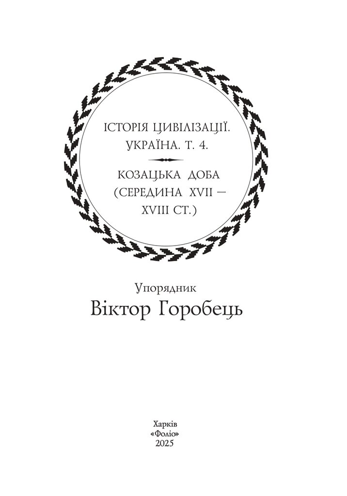 Четвертий том серії «Історія цивілізації. Україна» присвячено періоду так званої козацької доби (середина ХVII – XVIII ст.). Зміст видання розроблено з метою висвітлення найважливіших аспектів історико-культурного процесу, що відбувався на землях сучасної України в той період.