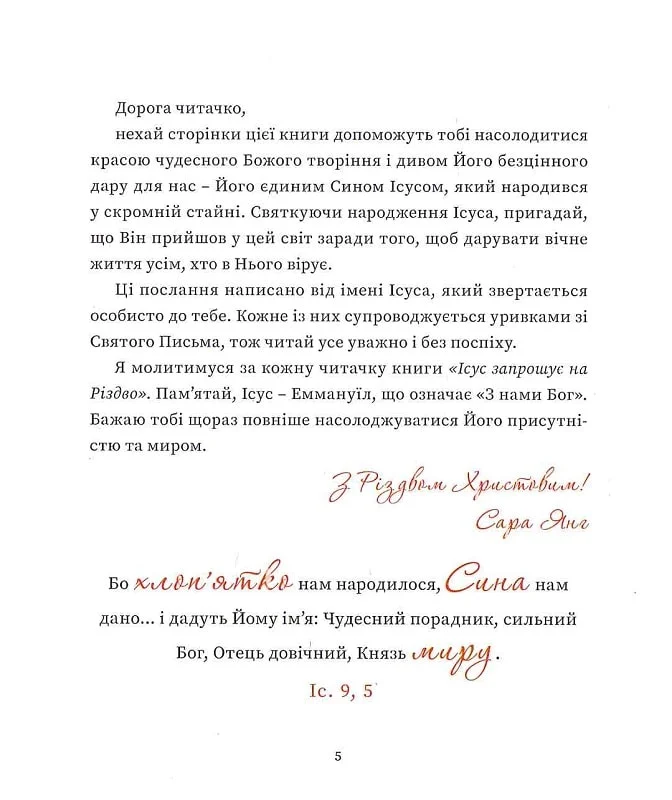 Книга Сари Янг «Ісус запрошує на Різдво» допоможе тобі відчути мир, затишок і радість, перебуваючи в присутності Ісуса – Того, хто розуміє тебе досконало і любитиме тебе вічно.