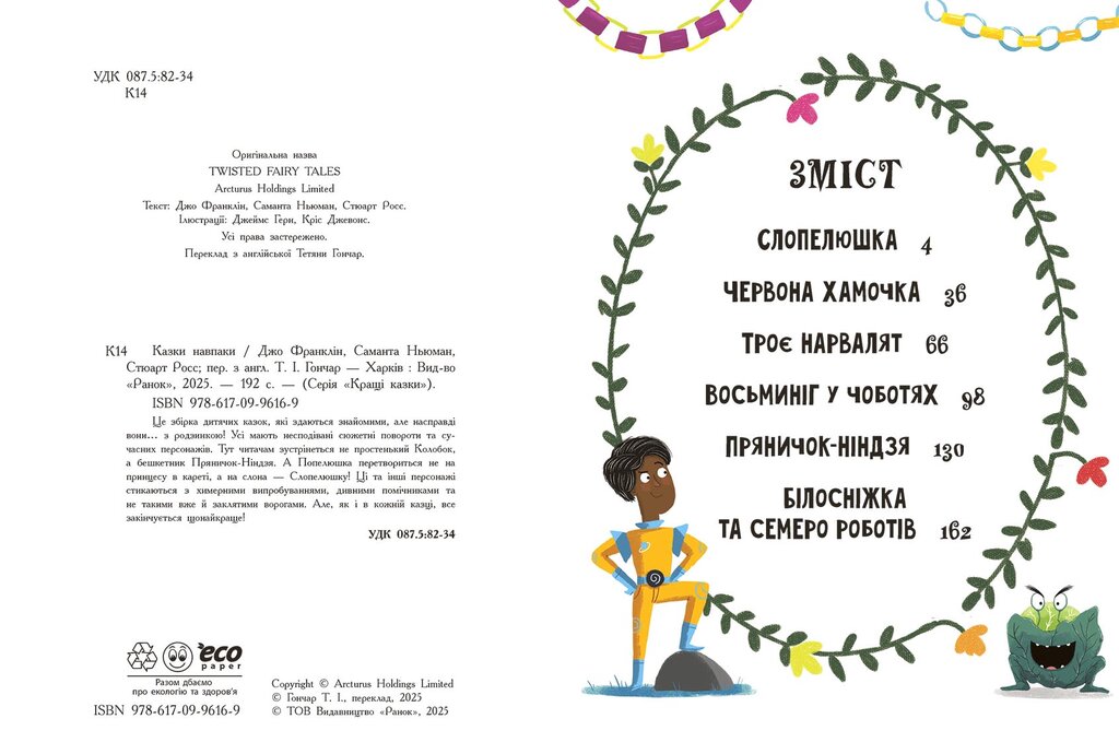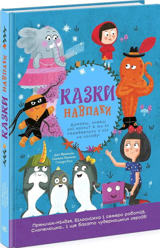 Що буде, якщо відомі всім дітлахам казки перевернути з ніг на голову? А буде щось дуже кумедне, новеньке й цікаве, як-от ця книжка. «Казки навпаки» — це збірка класичних дитячих казок, які здаються знайомими, але насправді вони з родзинкою! Усі мають несподівані й кумедні сюжетні повороти та сучасних персонажів. Тут вам зустрінуться, наприклад, не простенький Колобок, а бешкетник Пряничок-Ніндзя. А Попелюшка перетвориться не на принцесу у черевичках, а на Слопелюшку — слона в ластах!