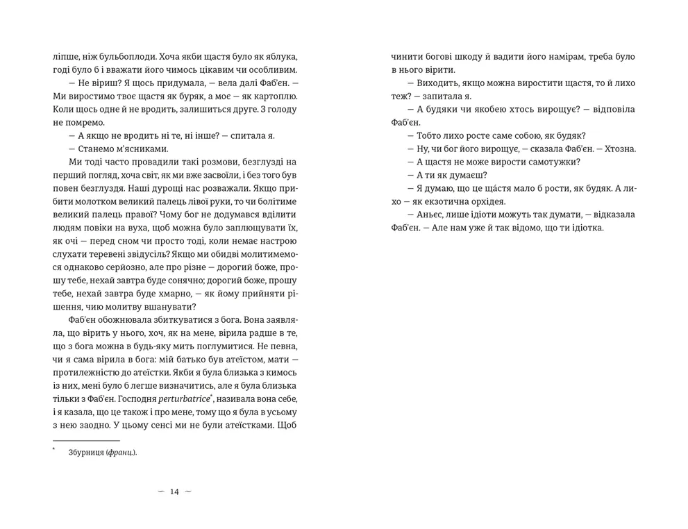 Фаб’єн мертва. Аньєс отримує новини про подругу дитинства, перебуваючи в Америці, далеко від французького села, де виросли дві дівчинки. Будучи дітьми в зруйнованому війною глухому містечку, вони побудували особистий невидимий для інших світ. А власні вигадки обернули на своїх союзників. Раптове перевтілення Аньєс із пастушки на популярну паризьку письменницю, а згодом — майбутню зірку англійського вищого світу, напозір здається великим фортом життя. Та чи так це насправді? Тепер Аньєс може вільно розповісти цю історію від свого імені.