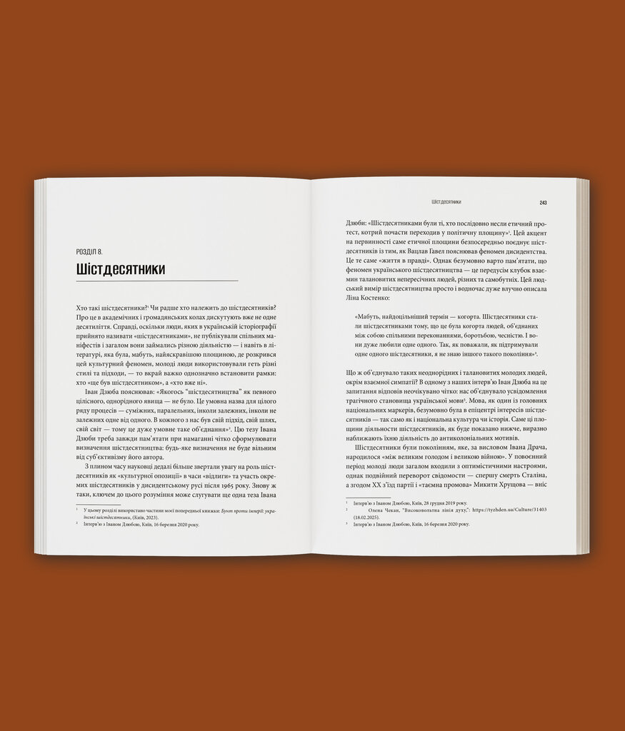 Водночас це історія боротьби шістдесятників, дисидентів і правозахисників, які розуміли, що відстоювати національну ідентичність у часи радянського панування – це боротися за майбутнє. Навіть після розпаду 1991-го радянська імперія залишила по собі не лише назви вулиць і російську мову в містах, а й міти про «братні народи» та звичку озиратися на Москву, глибоко вкорінені у свідомості мільйонів українців.