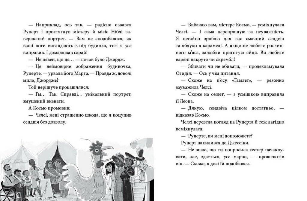 Зустрічайте третю книжку в серії «Агенція дивних сестер»! Нова історія «Курник, трохи місива й сендвіч» розповідає про трьох сестер-детективок. У містечку Ковенлі триває осінній ярмарок. Ковтунільда, Недолада й Огидія катають дітлахів на чарівних мітлах, а дев’ятирічна Джессіка Ніблі доглядає за тваринами у контактному зоопарку. Та раптом зникає головна зіркова птиця! Четвірка друзів вирушає на пошуки.