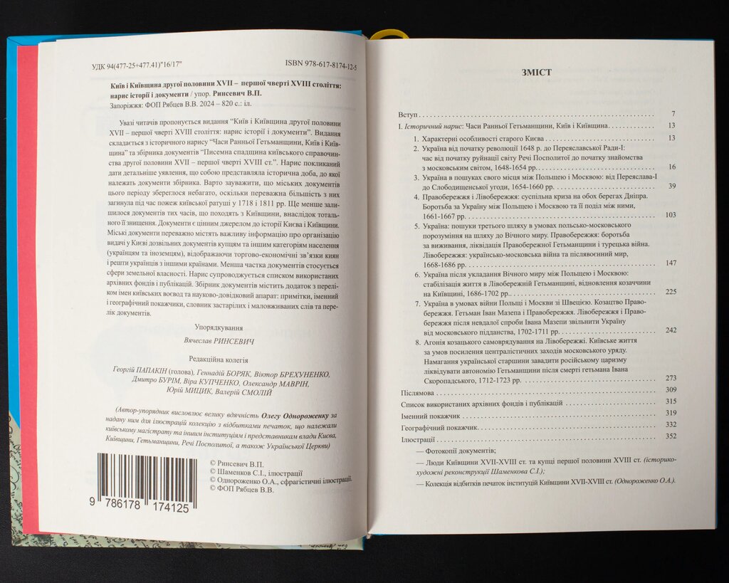 Видання складається з історичного нарису Часи Ранньої Гетьманщини, Київ і Київщина та збірника документів Писемна спадщина київського справочинства другої половини ХVII – першої чверті XVIII ст.. Нарис покликаний дати детальніше уявлення, що собою представляла історична доба, до якої належать документи збірника.