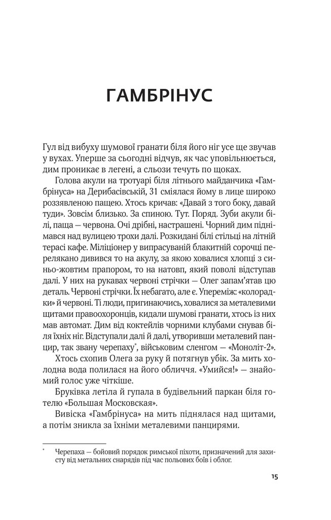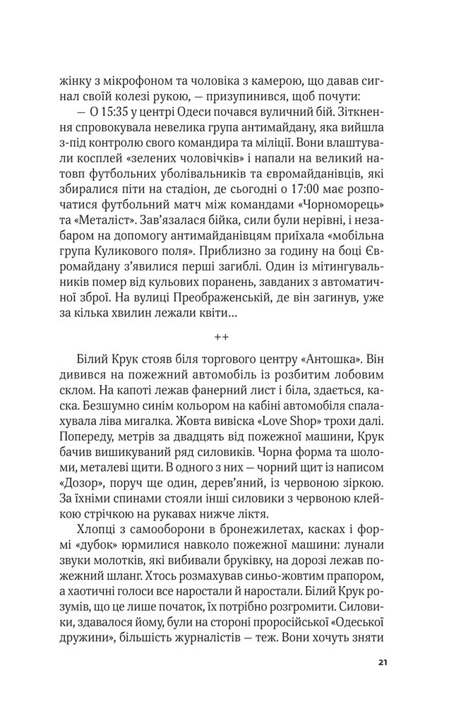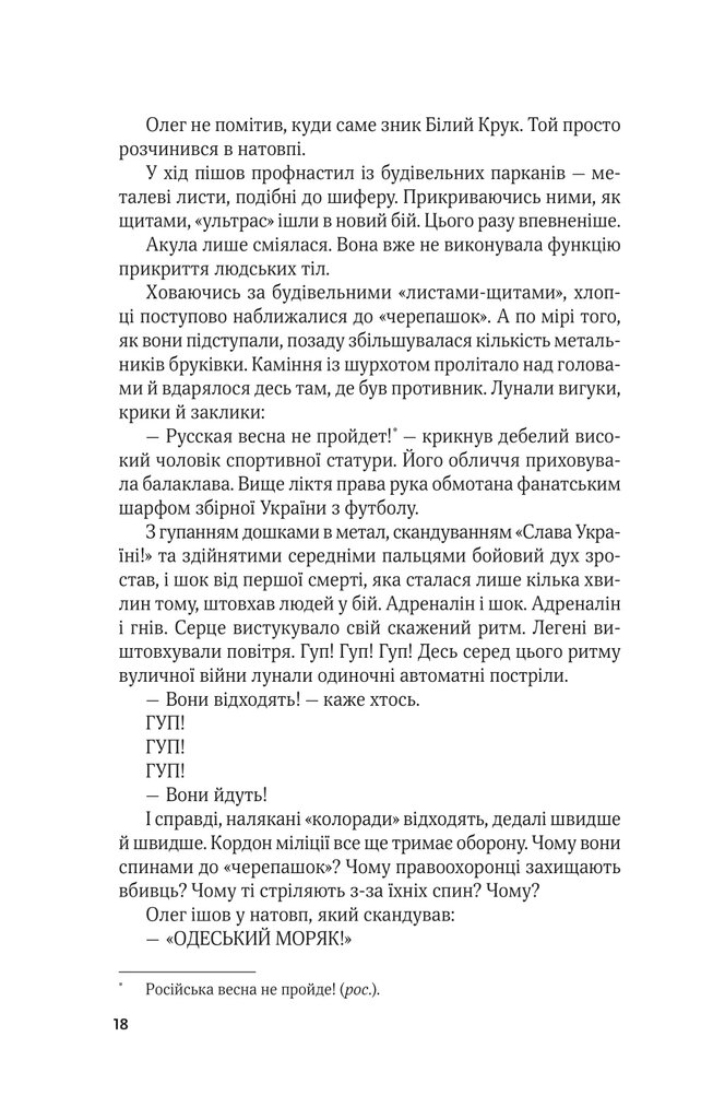 Автор крокує на межі жанрів і форм, витворюючи унікальний текст-свідчення доби, крізь яку довгі роки простує український народ. В оповіді письменник вшановує загиблих, що серед них Максим «Далі» Кривцов та Алла Пушкарчук із позивним «Рута». З цими людьми митець ділив початок свого військового шляху, в дусі братерства й особливого зв’язку пізнаючи життя на фронті.