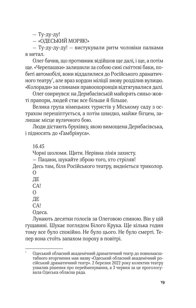 Поступово реалії військової служби змінили їх. Тих, хто не знав різниці між ім’ям і позивним, хто не ховав загиблих друзів на полі бою. Власні спогади автор обрамлює у художню форму, для старту обираючи події протистояння в Одесі 2 травня 2014 року. Локації та час текстів повсякчас змінюються. Блукаючи між знайомими місцями радощів, втрат і усмішок крізь сльози, письменник повсякчас озирається на улюблене місто моря.