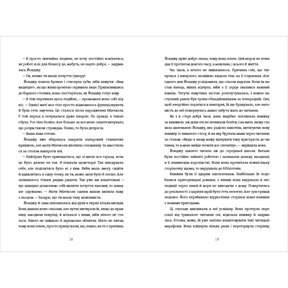 Йонджу виснажена. У жінки є все — успішна кар’єра, шлюб, швидкий столичний ритм життя, і все ж вона відчуває порожнечу. Тож робить відчайдушний крок, залишає старе життя позаду і здійснює свою давню мрію: відкриває книгарню. Спершу Йонджу ведеться непросто, втім чим далі, тим глибше жінка занурюється в новий захопливий світ, що гоїть її душу. Книгарня «Хюнам-тон» перетворюється на теплий, гостинний притулок для загублених душ — місце, де можна відпочити, зцілитися і згадати, що ніколи не пізно почати все спочатку. Ця затишна історія сподобається тим, хто почувається дещо загубленим у складному «дорослому» світі, і допоможе поглянути на життя з іншої перспективи завдяки різноманітним персонажам, серед яких ви неодмінно знайдете себе.