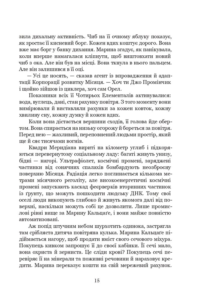 Місяць постійно хоче тебе вбити. Він має для цього тисячі способів: крижаний вакуум, смертельна радіація, задуха від реголітового пилу чи поступове руйнування кісток твого тіла. І якщо ти виживеш, тебе намагатимуться зламати П’ять Драконів — корпорації, що керують місячними багатствами та навіть твоїм диханням.