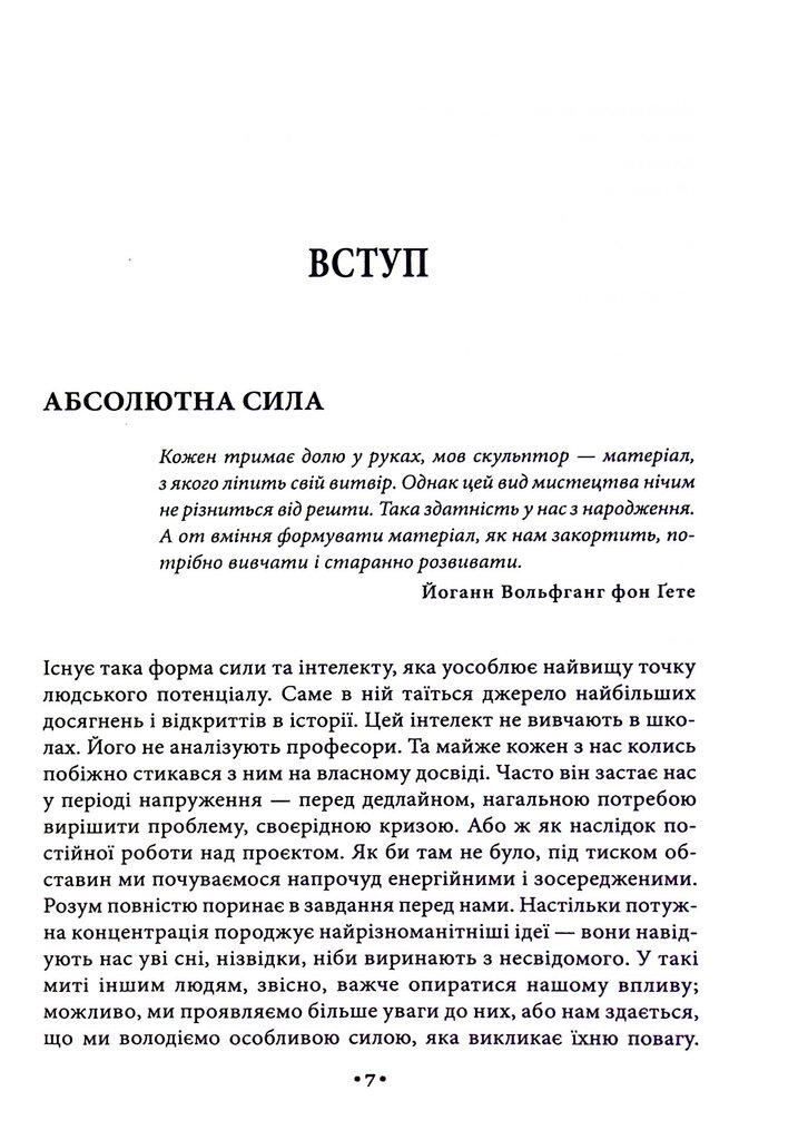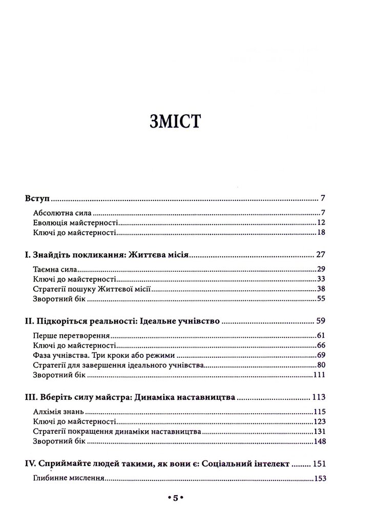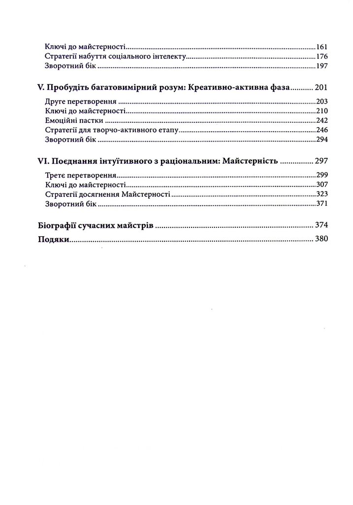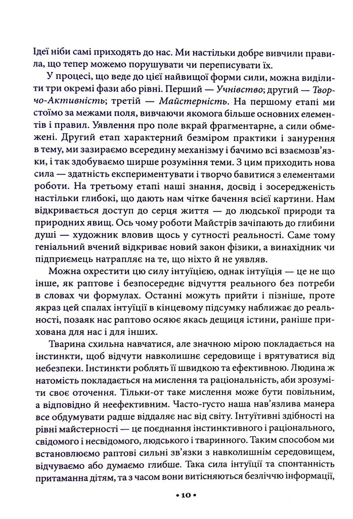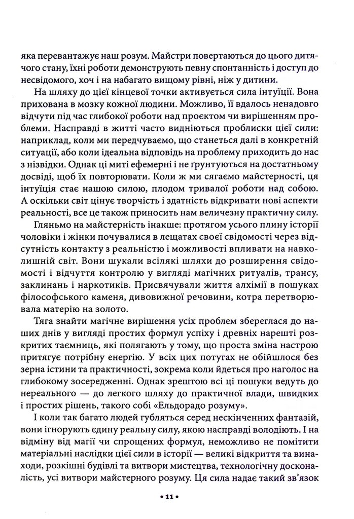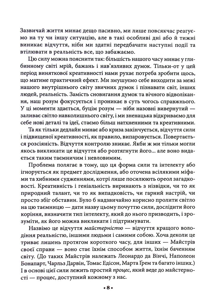 Роберт Грін називає описане відчуття майстерністю. На прикладі таких Майстрів справи, як Леонардо да Вінчі, Наполеон Бонапарт, Чарльз Дарвін, Томас Едісон, Марта Ґрем та інші, ви дізнаєтеся, як: знайти своє покликання; пройти необхідні етапи учнівства; розвинути соціальний інтелект; пробудити Багатовимірний розум.