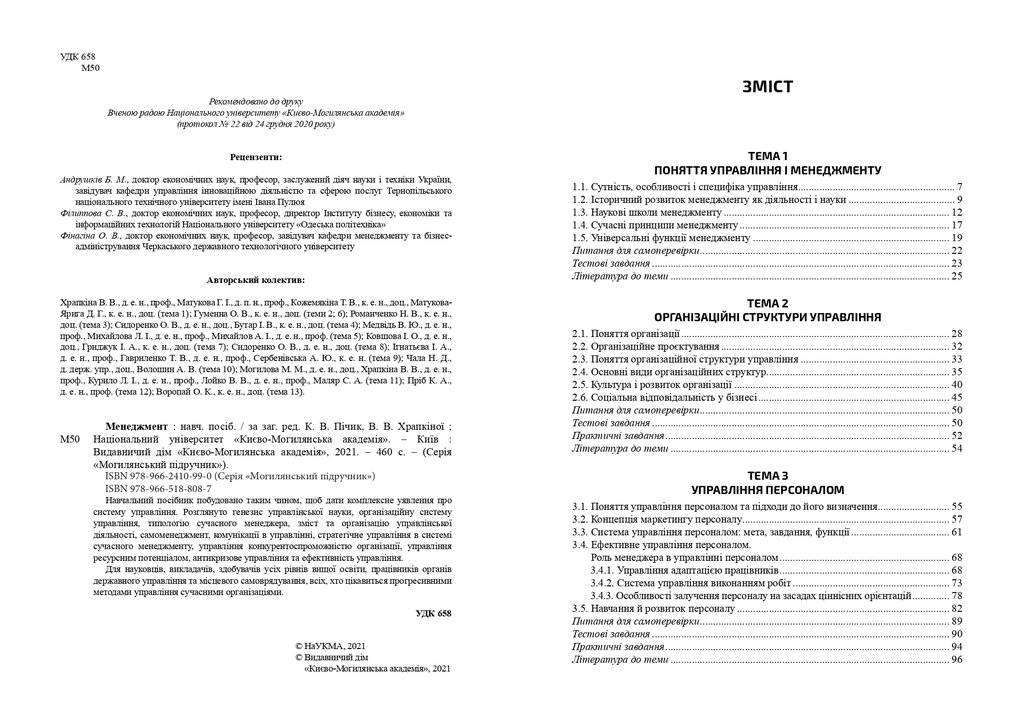 Навчальний посібник побудовано таким чином, щоб дати комплексне уявлення про систему управління. Розглянуто генезис управлінської науки, організаційну систему управління, типологію сучасного менеджера, зміст та організацію управлінської діяльності, самоменеджмент, комунікації в управлінні, стратегічне управління в системі сучасного менеджменту, управління конкурентоспроможністю організації, управління ресурсним потенціалом, антикризове управління та ефективність управління.