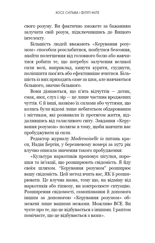 Уперше опублікована в 1978 році, ця книга допомогла мільйонам людей створити краще, щасливіше й успішніше життя. Використовуючи екстраординарний курс керування розумом, розроблений Хосе Сильвою в 1960-х роках, автори цього доступного посібника пропонують дієву програму, яка допоможе пом’якшити стрес, подолати шкідливі звички й емоційну незахищеність, підвищити креативність, розвинути концентрацію, реалізувати свої мрії й поглибити стосунки. Ця революційна книга, що містить поради щодо трансформації і захопливі тематичні дослідження, навчить вас використовувати свій розум на глибшому й ефективнішому рівні й розкрити його надзвичайну силу.