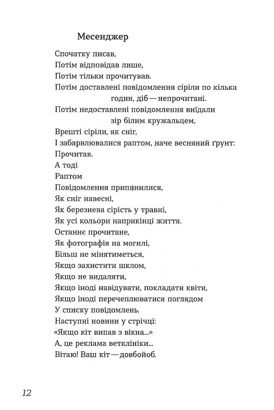 Нова книжка поезій Світлани Поваляєвої – складна комбінація етюдів із життя в тилу і на фронті. Війна, кохання, постійне чекання, надія, втрати. Степи й окопи, оманливий затишок дому та свист ракет над головою, захисники і вороги. Свої та чужі. Макабрична історія, яку ми проживаємо щодня. Час, який не обирали. Земля, за яку готові триматися до скону. Втрати, від яких зводить щелепу. «Війна — не звитяга, а просто життя, як є».
