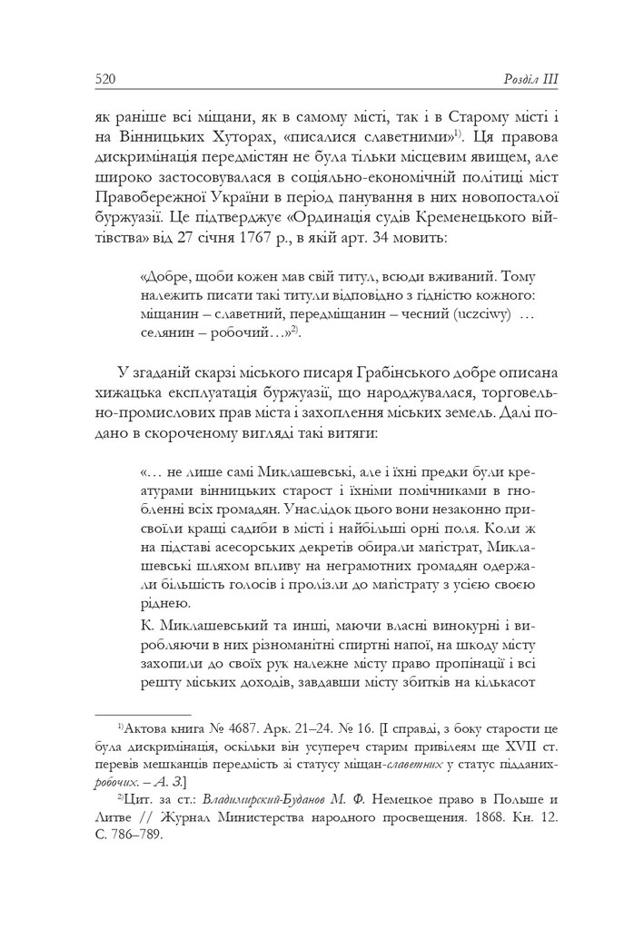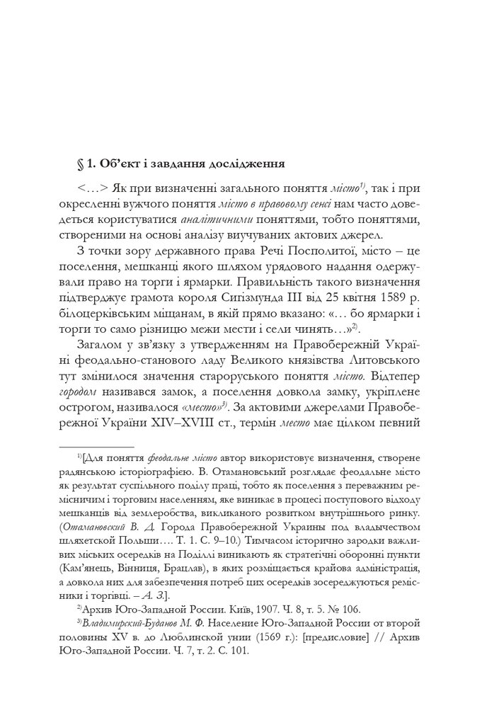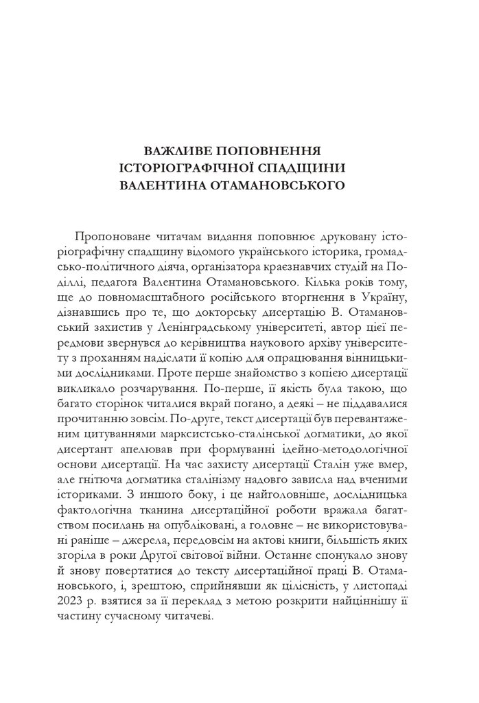 Дослідження відомого українського історика Валентина Отамановського (1893–1964) розкриває соціяльно-економічну динаміку міст Правобережної України від занепалих напівземлеробських міських осередків доби Руїни і першої чверти XVIII ст. до торговельно-ремісничих і виробничих міських формацій другої половини цього століття.