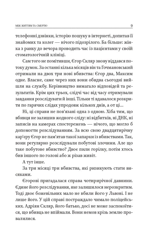 Він знає, як тебе звати і навіть те, де ти живеш. Він знає, ким ти працюєш, а також усі твої звички. Однак ти й не здогадуєшся про це. Він полює на тебе та навіть встиг спланувати, як уб’є тебе. А ти живеш своїм життям, адже нічого не підозрюєш. Відомий слідчий Єгор Скляр та його команда збентежені: у місті за останні пів року збільшилася кількість нерозкритих убивств. Справи між собою жодним чином не пов’язані. Чи так лише здається?