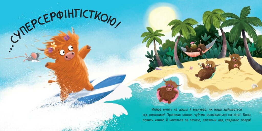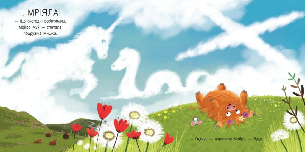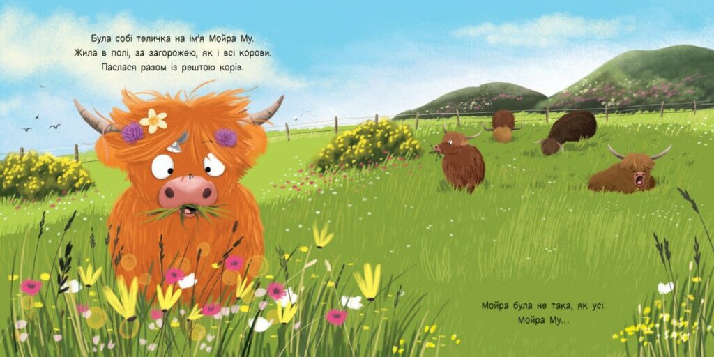 Мойра Му живе на фермі, пасеться високо в горах, їсть свіжу траву, як і всі інші корови. Та, на відміну від них, вона наважується мріяти й втілювати свої мрії! Весела книжка про віру в себе, дружбу і підтримку!