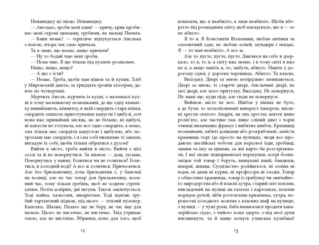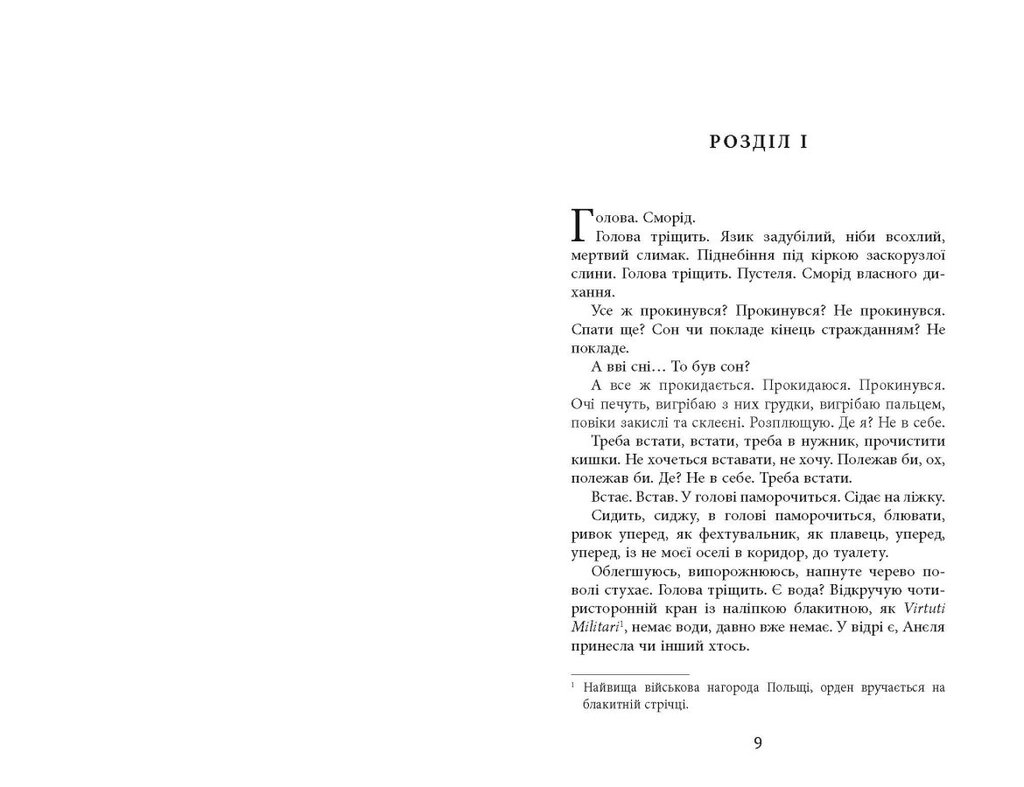 Дія роману сучасного польського письменника відбувається восени 1939 року в щойно окупованій гітлерівцями Варшаві. Головний герой, син німецького аристократа й польської патріотки, захищав свою батьківщину Польщу — але країни і її армії неймовірно швидко не стало. Що далі? Поринути у вир наркотичних і сексуальних задоволень чи виконувати місію — і якщо останнє, то як її відшукати в зруйнованому місті і в собі? І хто взагалі тепер той, кого можна назвати «я»? Роман у неповторній стилістиці оповідає про пошуки героя: немотивовані вчинки, плутані думки, спалахи прив’язаності, промені любові, вир безглуздих подій і пошук сенсу. Це проза психологічно-історична в найповнішому значенні обох частин слова.