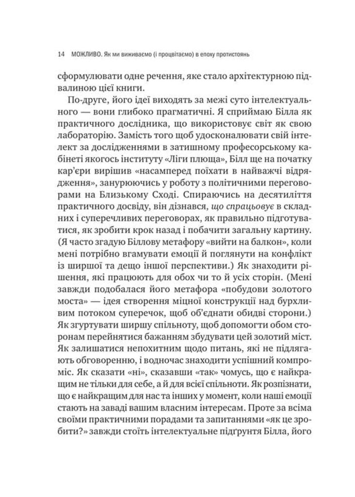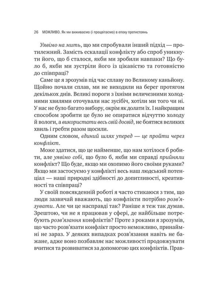 Книга «Можливо: як ми виживаємо (і процвітаємо) в епоху конфліктів» — це нонфікшн про психологію конфлікту й комунікацію у буремні часи, коли протистояння стали щоденною нормою. Автор — Вільям Юрі, американський науковець і співзасновник Гарвардської школи перемовин. Книга розкриває антропологічну природу конфлікту, узагальнює трансформаційний підхід до розв'язання суперечок і допомагає знайти консенсус навіть там, де нібито виникли непереборні розбіжності.