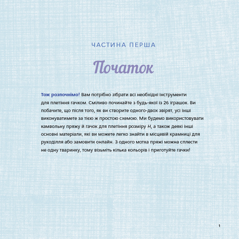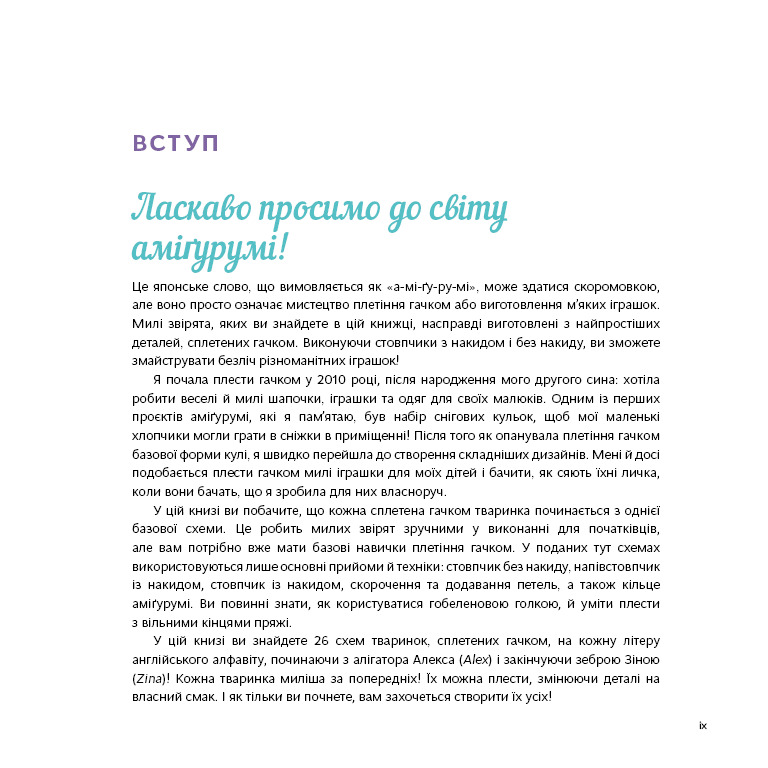 Ця книжка-посібник із плетіння гачком містить 26 простих схем для створення чарівних іграшок амігурумі. Кожен виріб має детальний опис й ідеально підходить як для початківців, так і для більш просунутих прихильників цього виду плетіння. Створюйте, деталізуйте та доповнюйте кожного персонажа своїми ідеями, щоб оживити іграшки, які можна обіймати, посадити за стіл чи на книжкову полицю або подарувати тому, кого ви любите, — вирішувати вам!