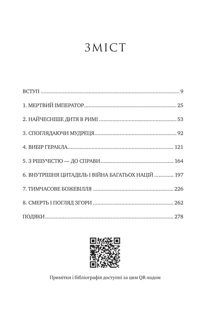 Ця книга про стоїцизм захоплює миттєво: імператор постає немов живий у всіх своїх втратах і звершеннях. Автор повертає з давнини шляхетну в чеснотах постать, стрижнем особистості якої було прагнення справедливості й громадянської відповідальності.