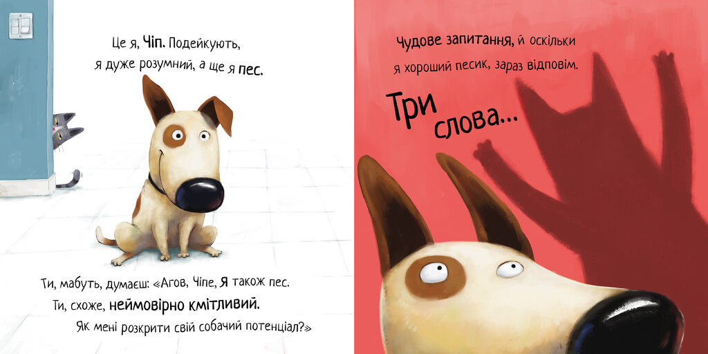 Подейкують, Чіп дуже розумний, а ще він — пес. Як хороший хлопчик Чіп порадить, як розкрити свій собачий потенціал. Передусім — не довіряй котам. Навіть кошенятам зі здоровенними очима. Усім котам — бойкот.