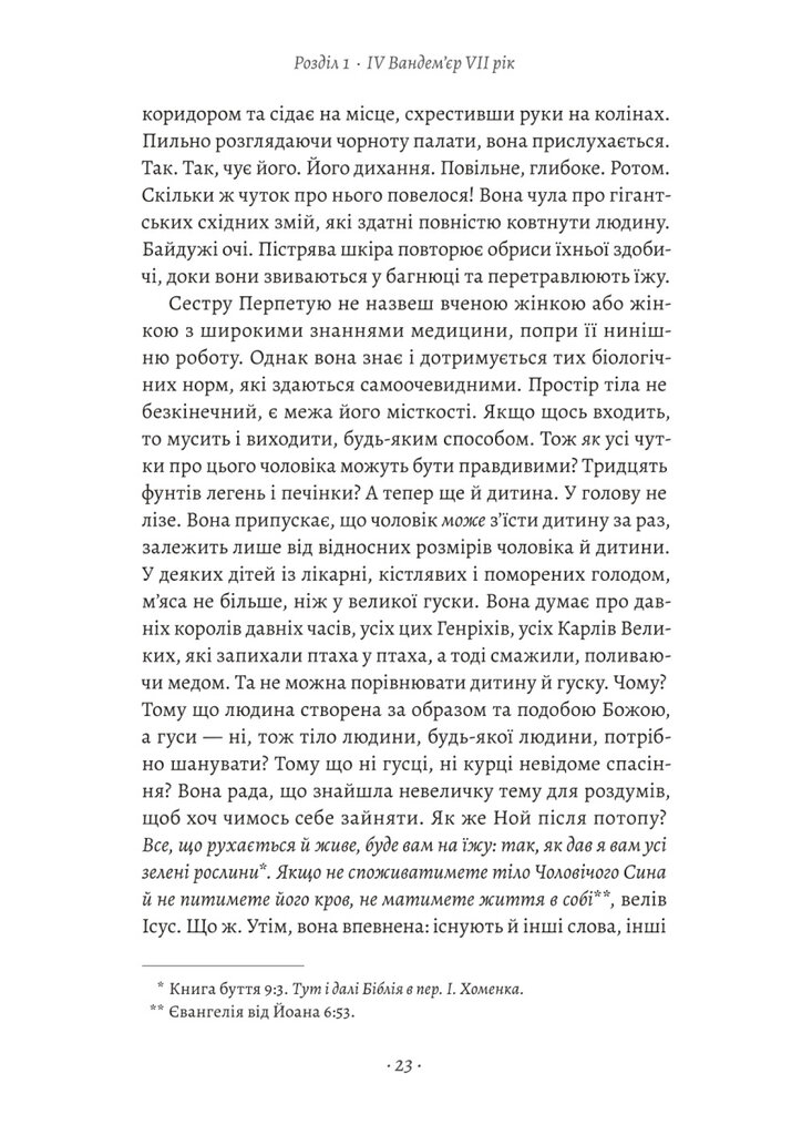 Франція, 1798 рік. Сестрі Перпетуї доручено сидіти з надзвичайним пацієнтом, який потребує цілодобового нагляду. Цього чоловіка повільно вбиває ізсередини золота виделка, яку він сам і з’їв. Але це ще не все — подейкують, що він робив жахливі речі, намагаючись вгамувати власну ненажерливість... яка, як кажуть, мучить його й досі.