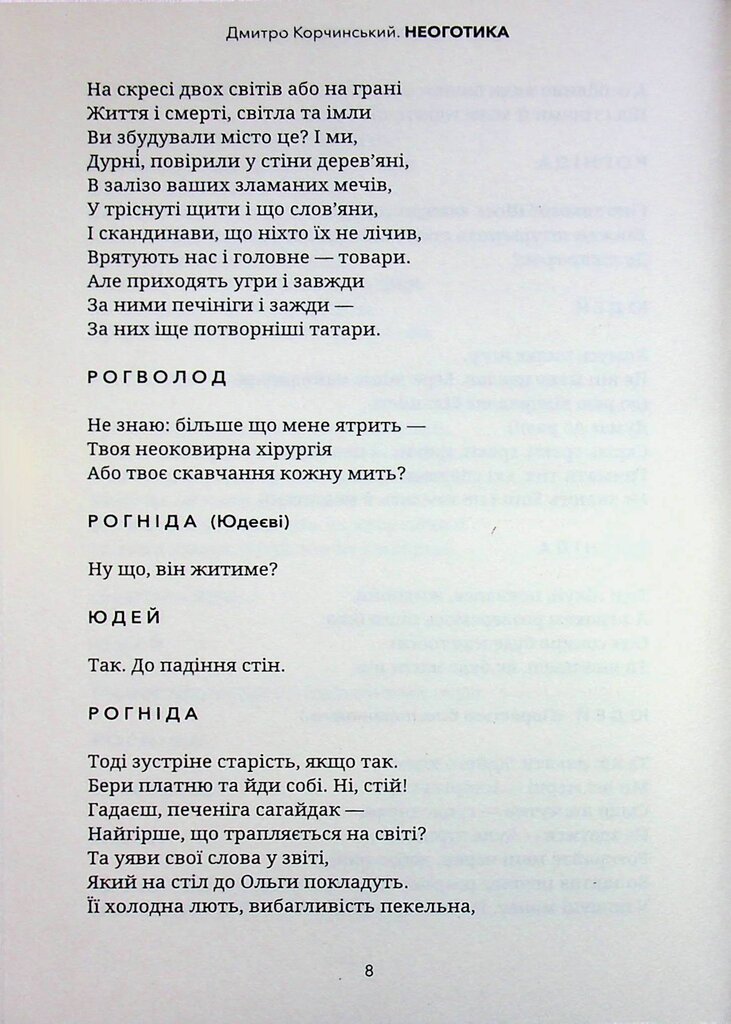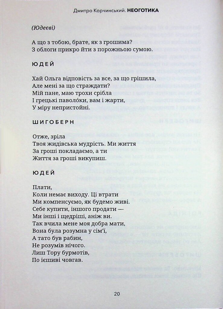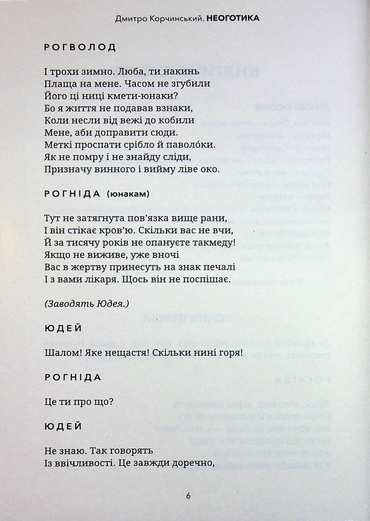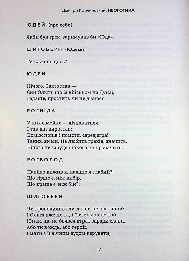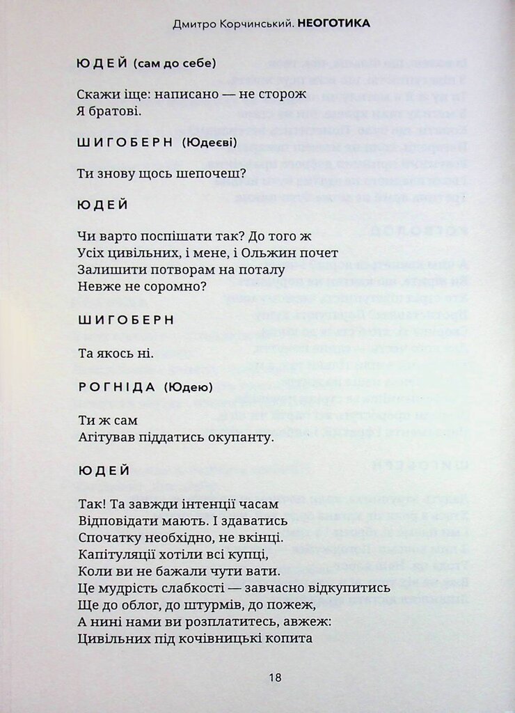 «Неоготика» — нова збірка п’єс Дмитра Корчинського, де переплітаються минуле і сучасне, гумор і серйозні життєві проблеми. Історія княгині Ольги, як історична драма, розкривається через гострі соціальні теми, на тлі яких пронизливо простежуються не лише політичні інтриги, а й людські емоції.