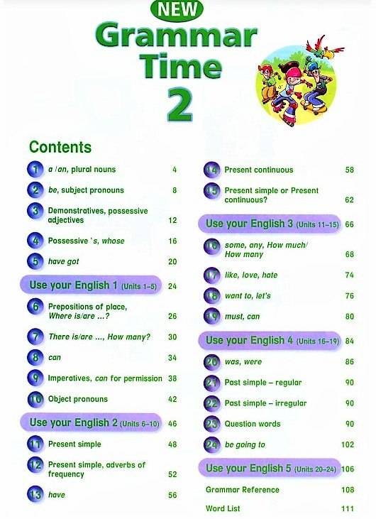 New Grammar Time — це яскрава кольорова серія підручників з граматики англійської мови для дітей віком 8–14 років. Видання вирізняється зрозумілим поясненням правил, коміксами, аудіо та великою кількістю практичних завдань.